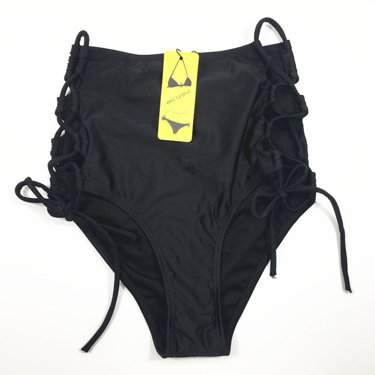 Flaunt many styles in this multi-way bikini set featuring black straps, and soft tie closures, Can be worn up to 12 different ways! and matching bikini bottom with a high waist, open side panels with lace-up detailing, and a cheeky cut back.
