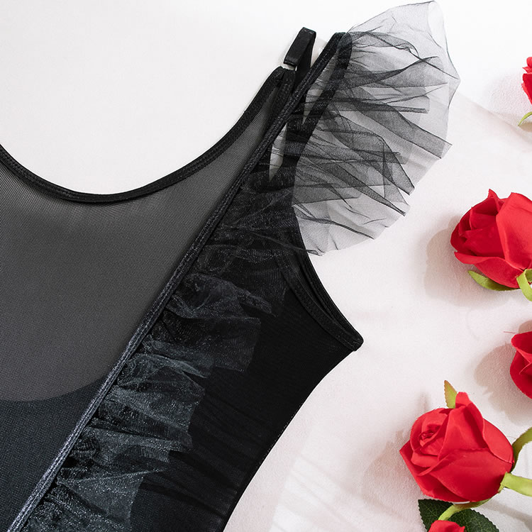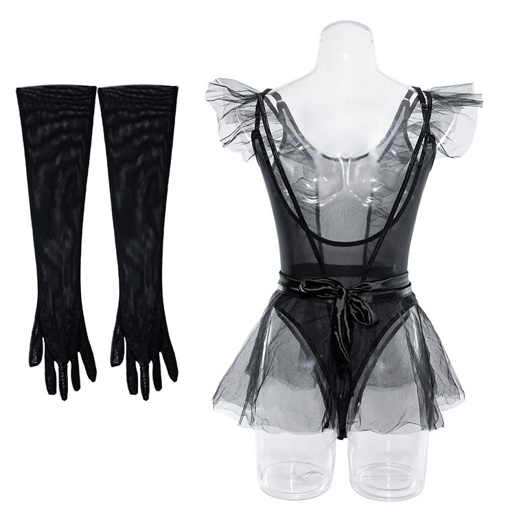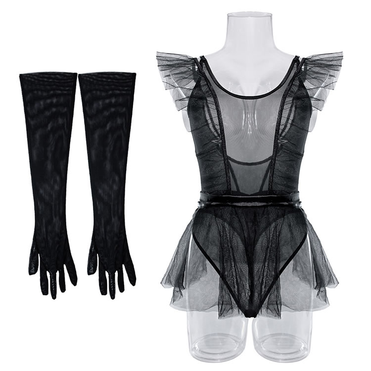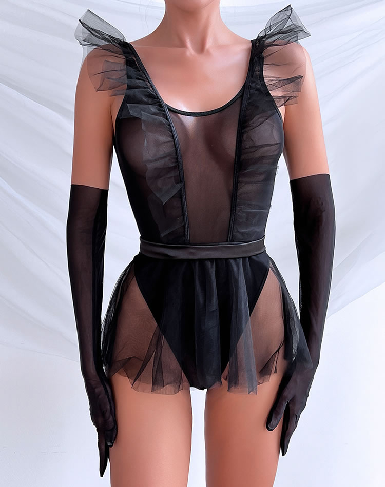 Black Try Again Mesh Teddy and Skirt Set