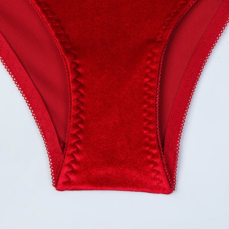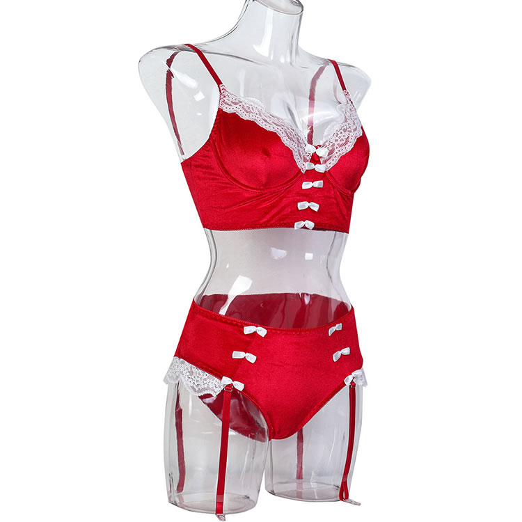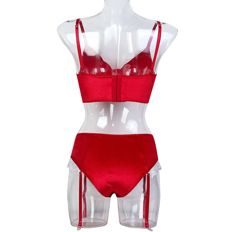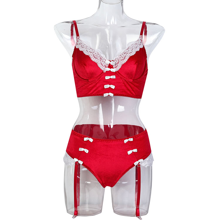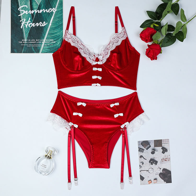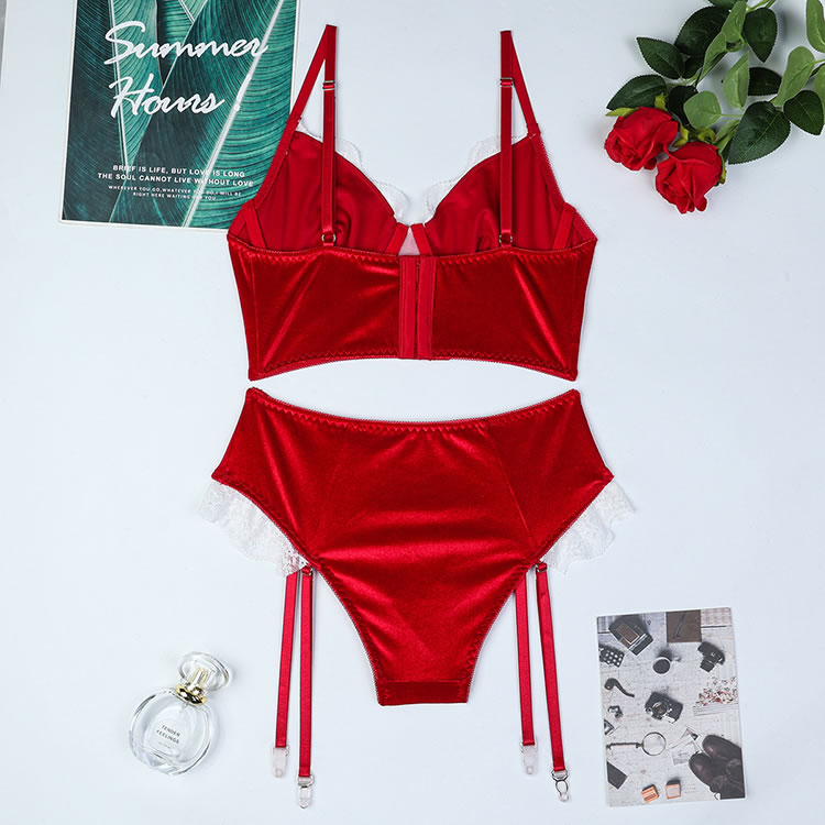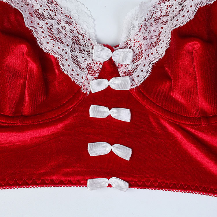 Christmas Lingerie Set Contrast Lace Velvet Underwire Santa Outfits for Women
