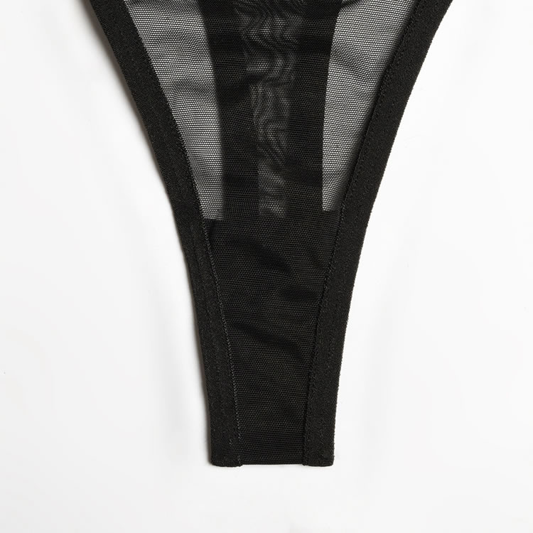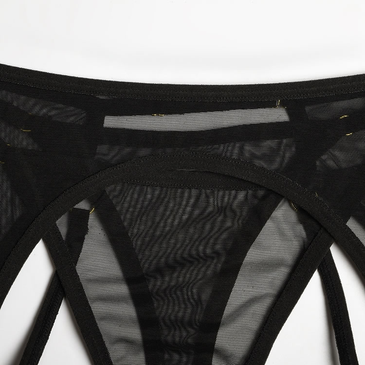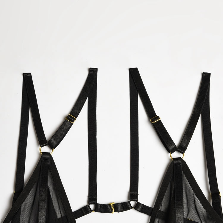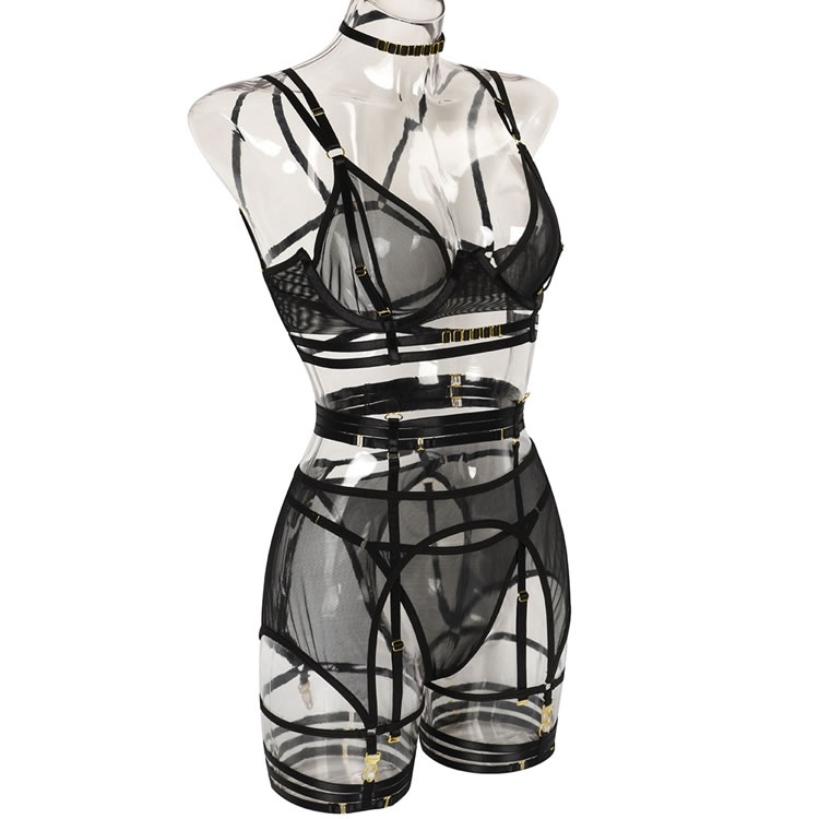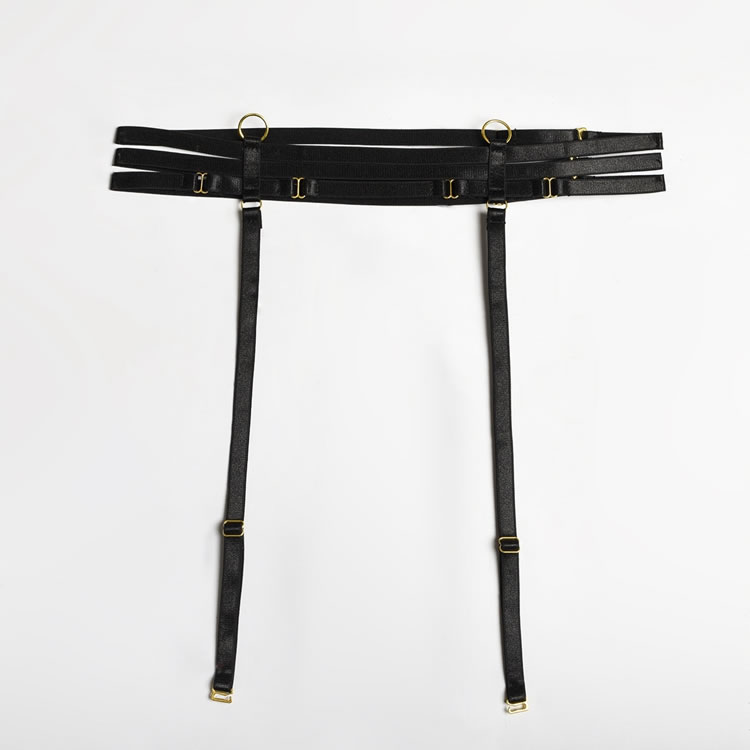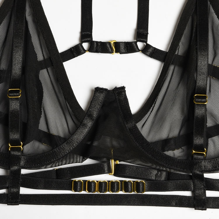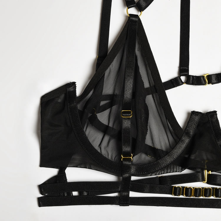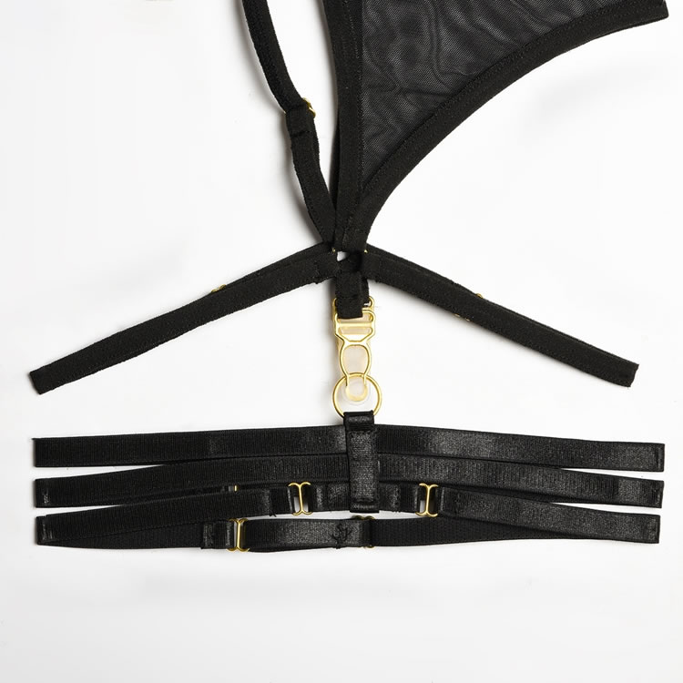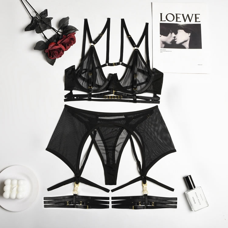 Harness Ring Linked Underwire Garter Thong Lingerie Set With 1pair Leg Ring