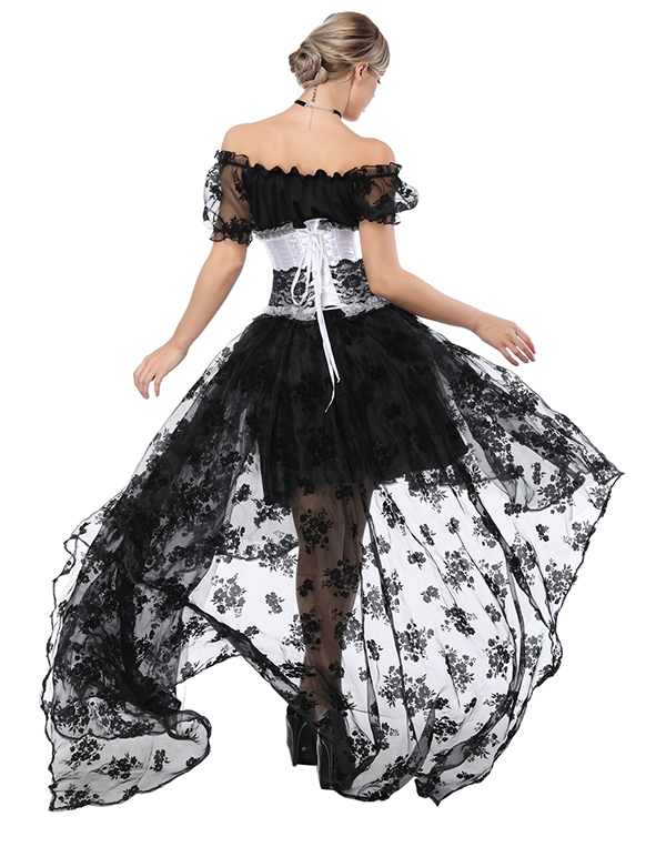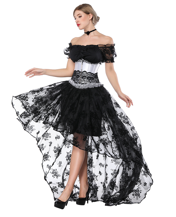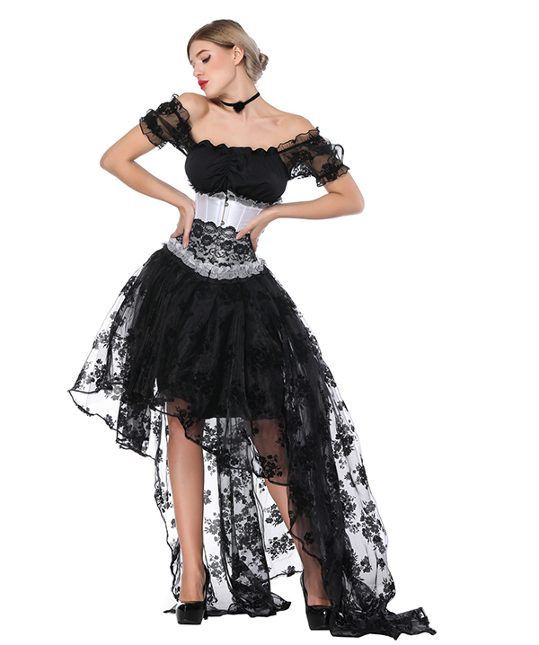 Lace Blouse, Tapestry Corset And Lace Skirt