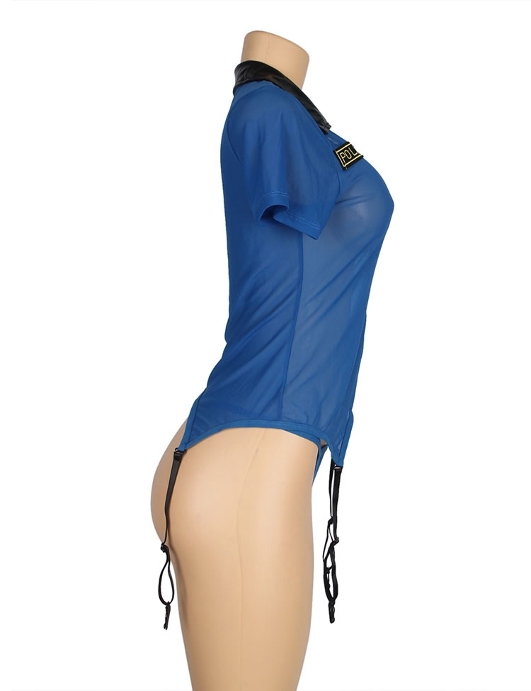 Be both feared and loved in this plus size Flirty Cop costume featuring a plunging V-neckline, a front zipper closure, removable adjustable garter straps, and a matching thong panty. (Thigh high stockings and handcuffs not included.)