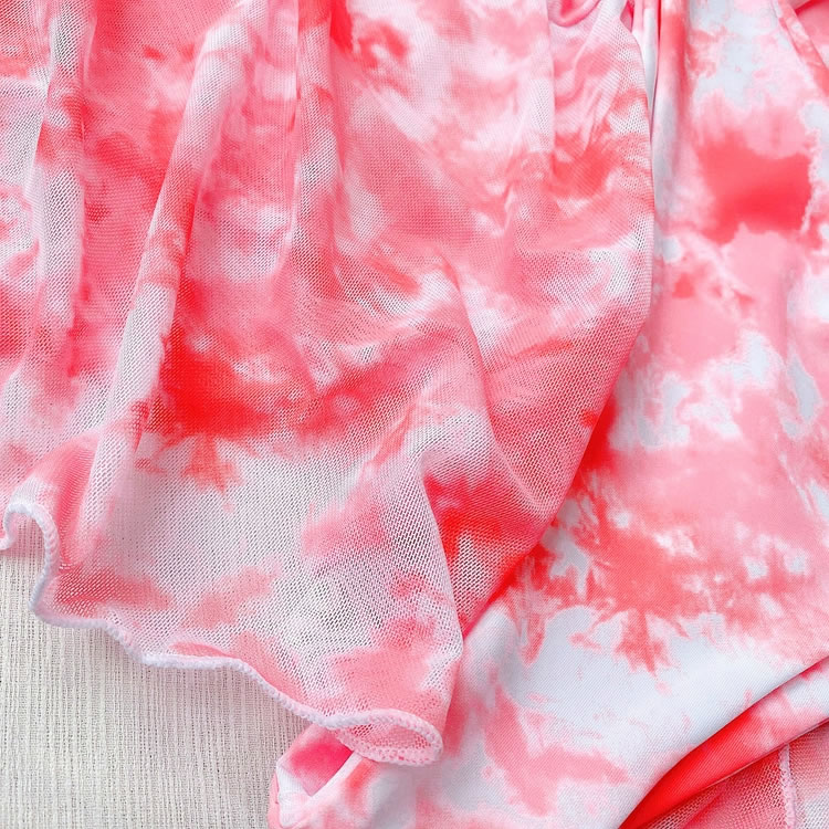Bring vibrant color to your swimwear with this exclusive swimsuit top featuring adjustable cups with a tie dye print, halter ties, a tie back closure, a matching high leg bottoms with an ultra cheeky cut back, and a matching skirt.