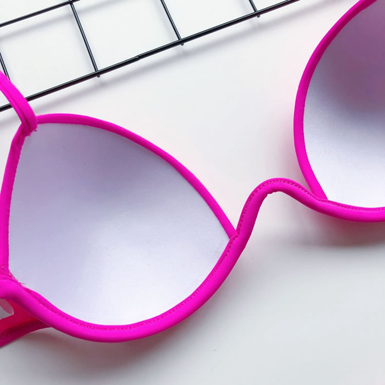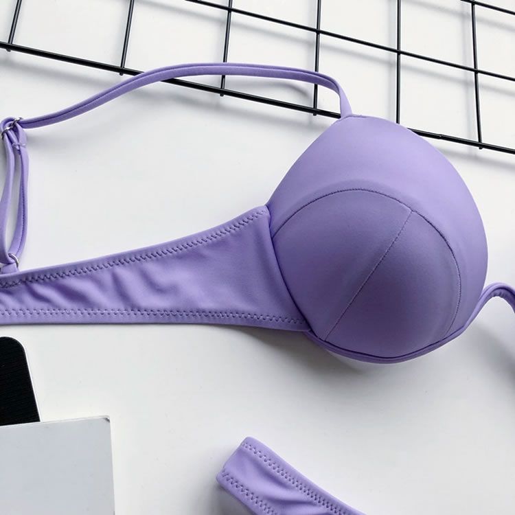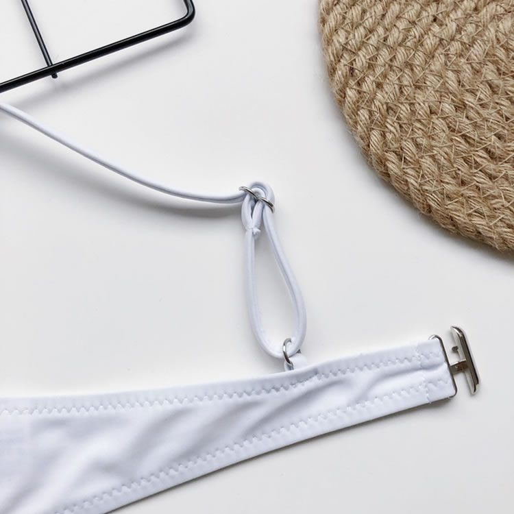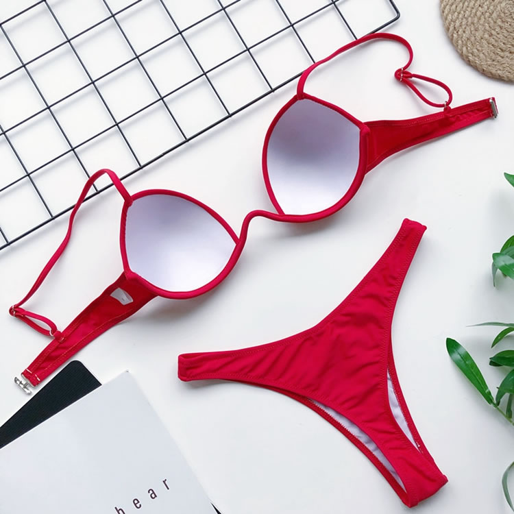 Party vibes await. Take in the rays in this sophisticated, exclusive bikini set featuring a monowire top, adjustable spaghetti straps, a hook back closure, and matching bottom swimsuit with a cheeky cut back.