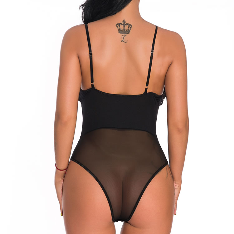 Be a beautiful distraction in this alluring teddy featuring soft cups with lace appliques, a strappy O-ring harness, adjustable spaghetti straps, a snap crotch, and a cheeky cut back.