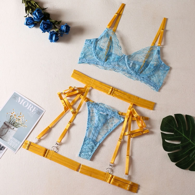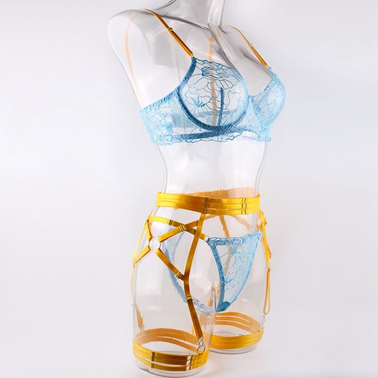 Make your babe feel like a lucky winner as you dazzle in the bedroom with this lace bra set featuring sheer lace underwire cups, adjustable spaghetti straps, a hook and eye back closure, a matching garter belt with adjustable garter straps, wraparound leg garters, and a matching panty.