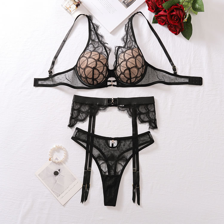 • Scalloped Eyelash Lace Underwire Bra