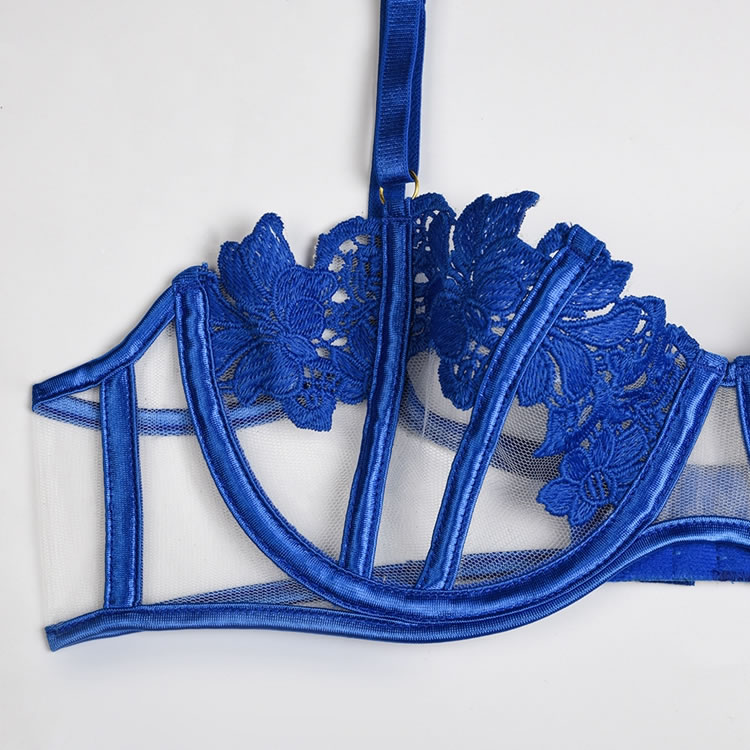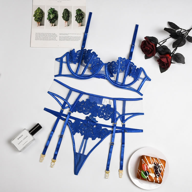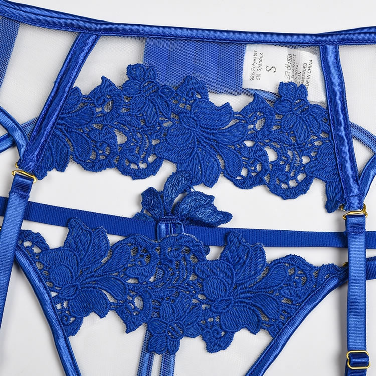 Show your babe they're the only one you want in this sexy lace bra set featuring sheer mesh and lace underwire cups, adjustable spaghetti straps, a hook and eye back closure, a matching garter belt with adjustable garter straps, and a matching thong panty.