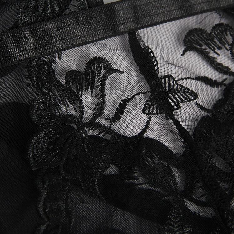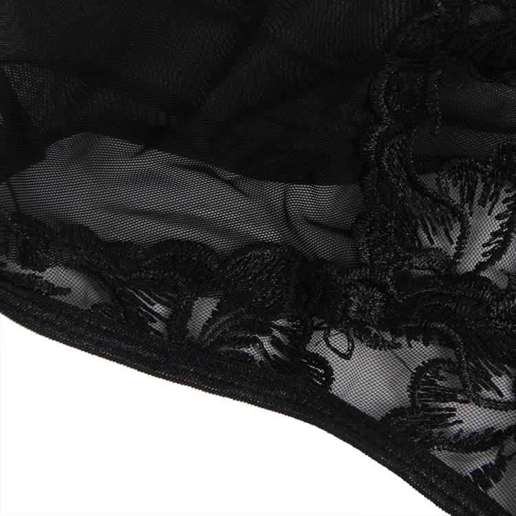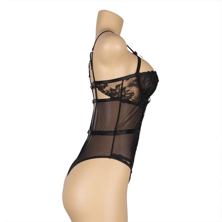 One-piece Sleeveless Underwired Floral Patterns Mesh Bodysuit