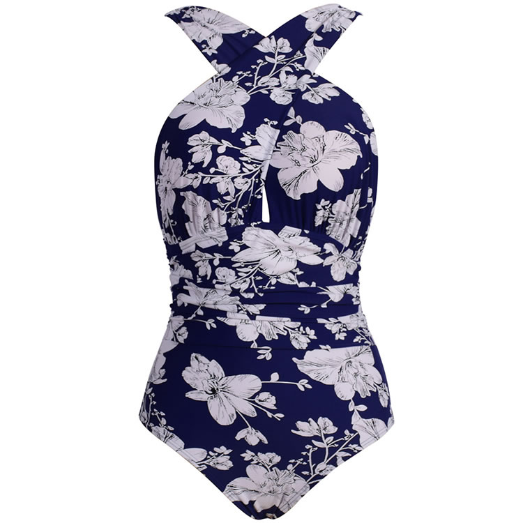 Plus Size Criss-cross Neckline One Piece Swimsuit