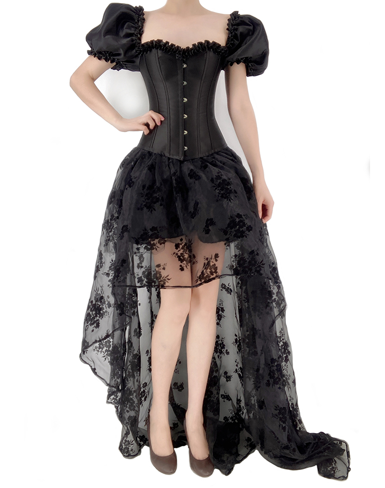 Ruffled Sleeves Overbust Corset Top With High Low Skirt