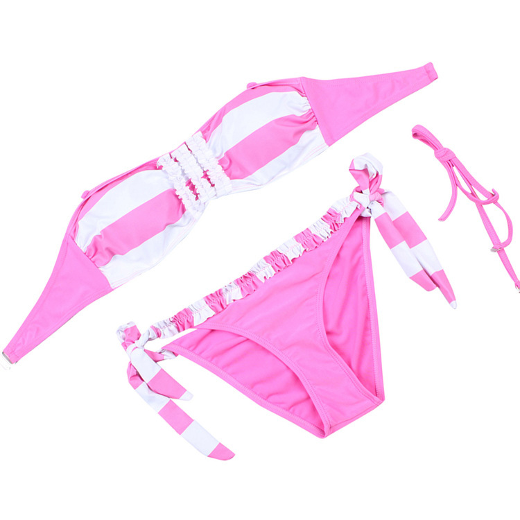 Sexy Strapless Bikini Sexy Stripe Elasticity Swimsuit