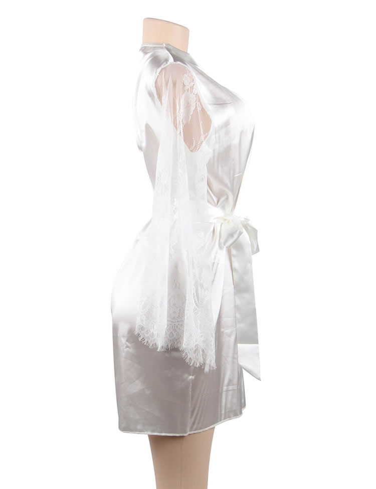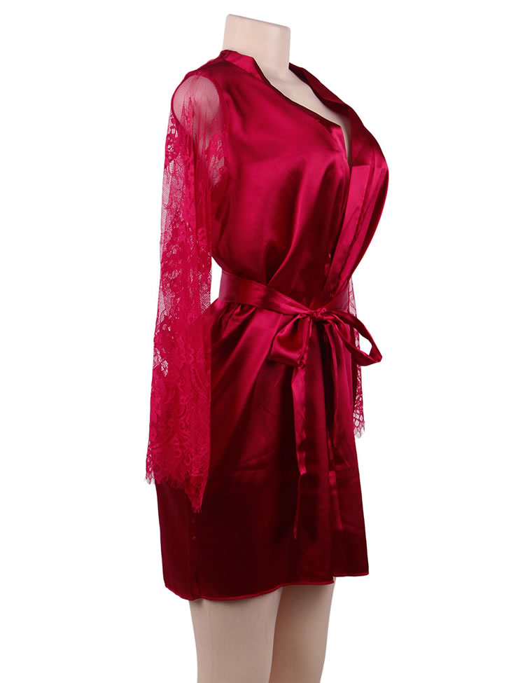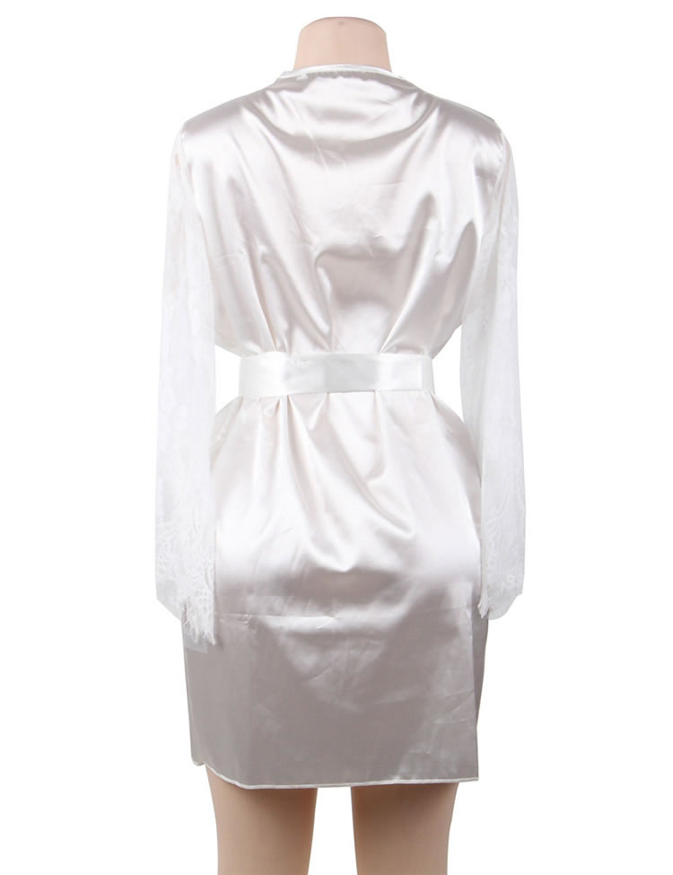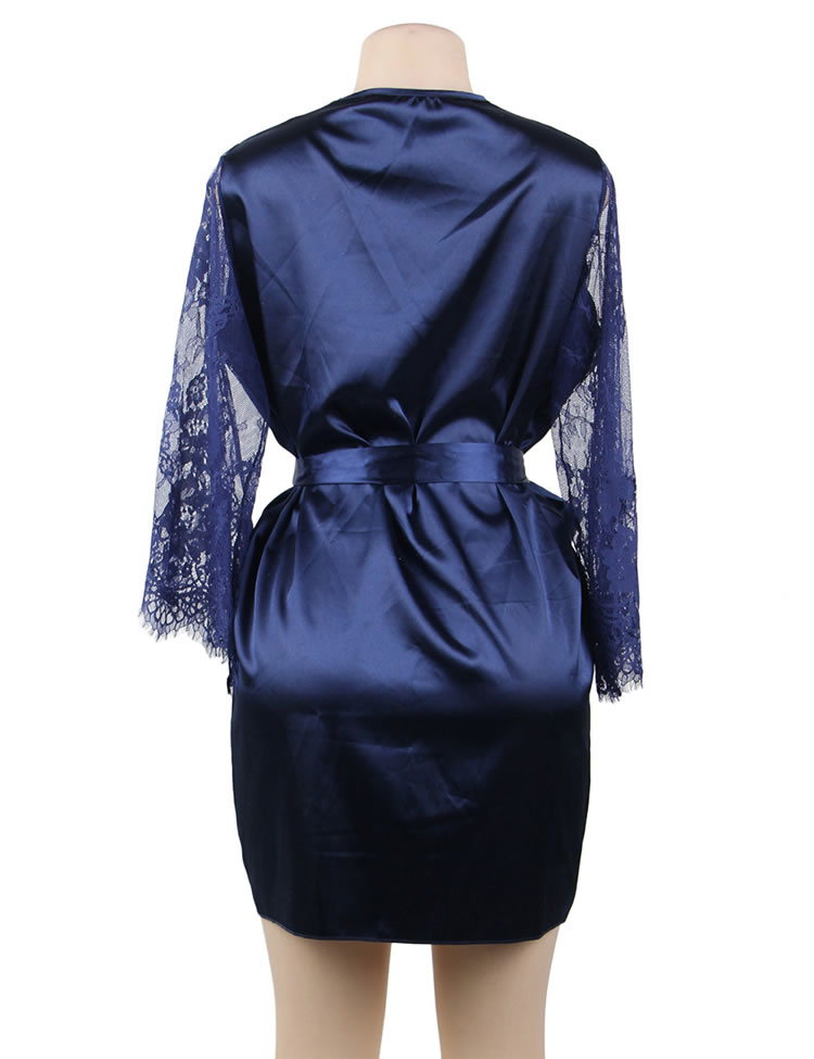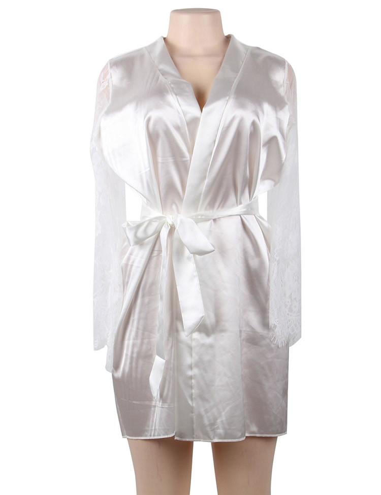 Silk Satin Lace Sexy Women Kimono Home Pajamas