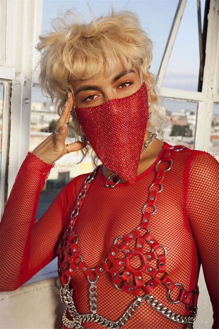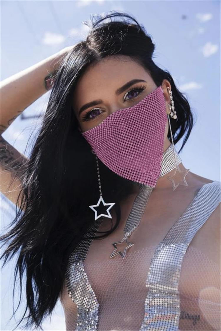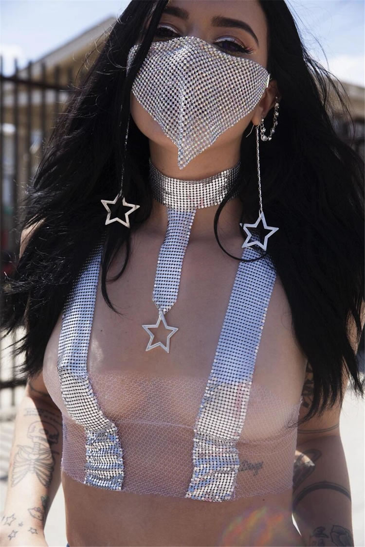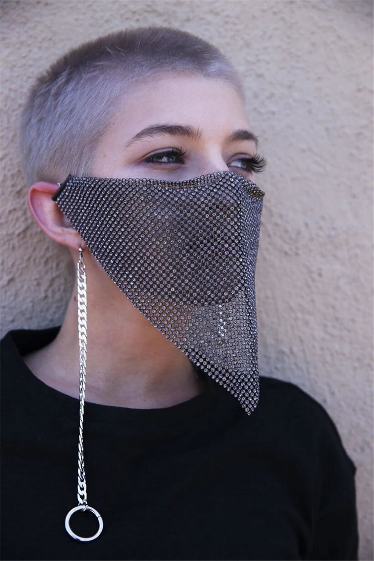 Redefine your face covering with a touch of sparkle. Get ready to party no matter where you are in this sexy face mask. Option to layer a solid mask underneath (not included) for a full coverage look.