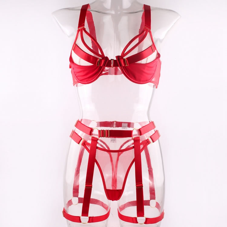 Bring your lover to their knees in this exclusive bra set featuring underwire cups, adjustable spaghetti straps, a hook and eye back closure, a matching high waisted garter belt with adjustable garter straps, wraparound leg garters, and a matching panty.