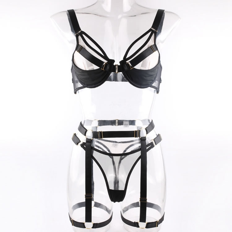 Command all their attention in this seductive bra set featuring underwire cups, adjustable spaghetti straps, a hook and eye back closure, a matching high waisted garter belt with adjustable garter straps, wraparound leg garters, and a matching panty.