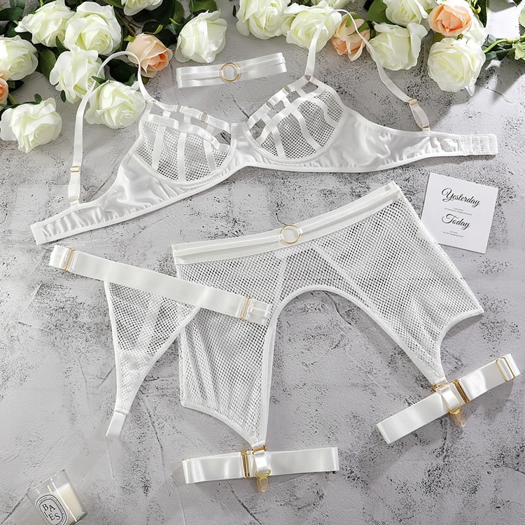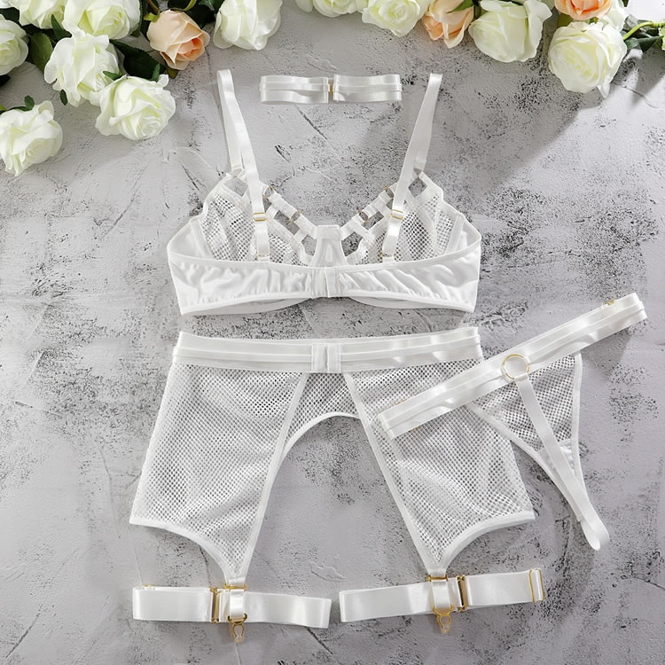 Underwire Bra, Garter Belt, Panty, Wraparound Leg Garters, Choker