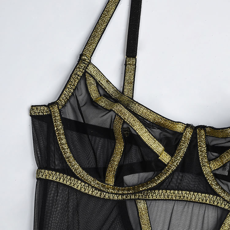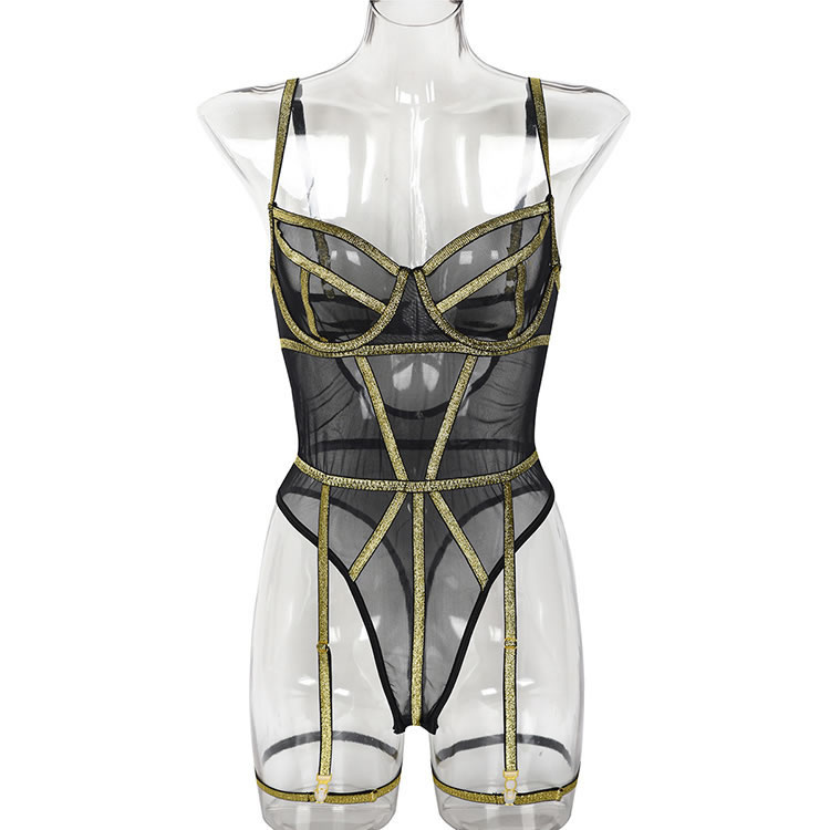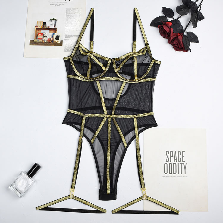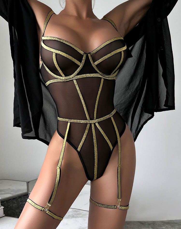 Give your viewers a show in this seductive sparkling mesh teddy featuring sheer mesh underwire cups, adjustable spaghetti straps, a hook and eye back closure, a sheer mesh bodice, a high cut leg, strappy garter straps, wraparound leg garters.