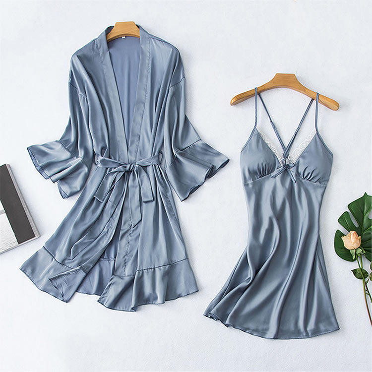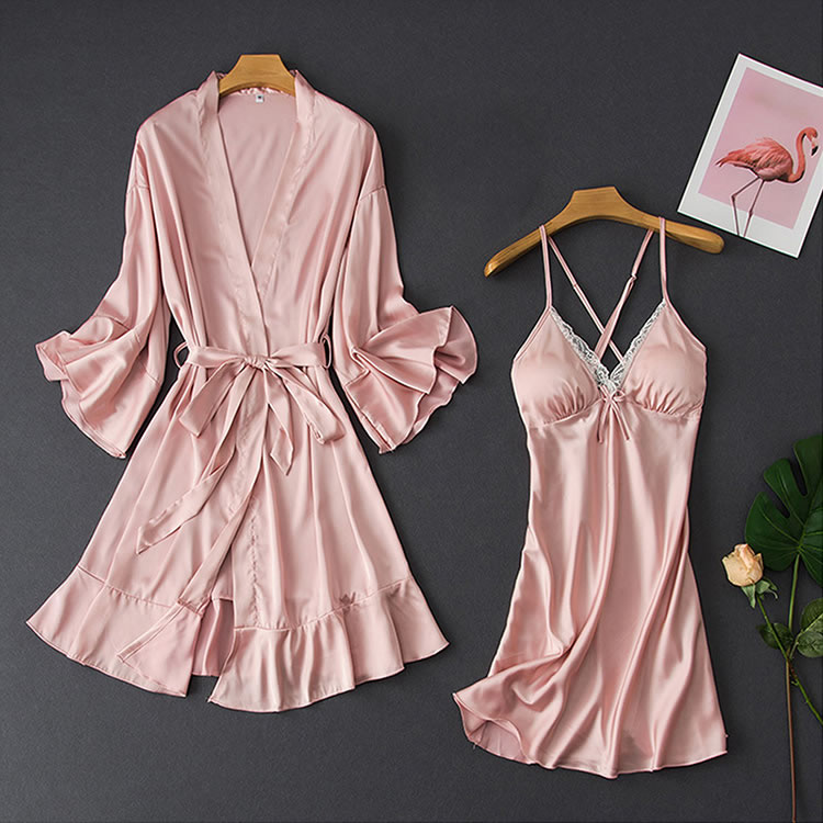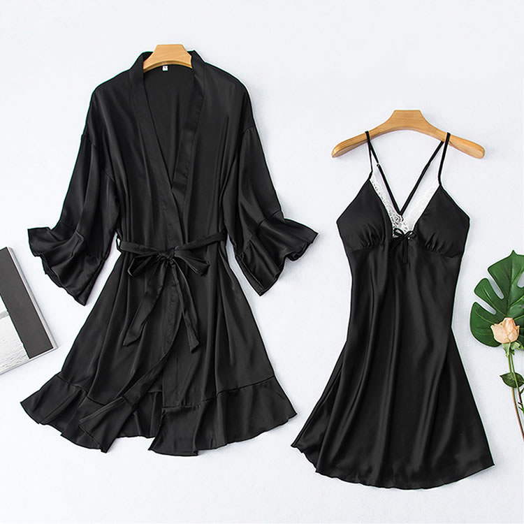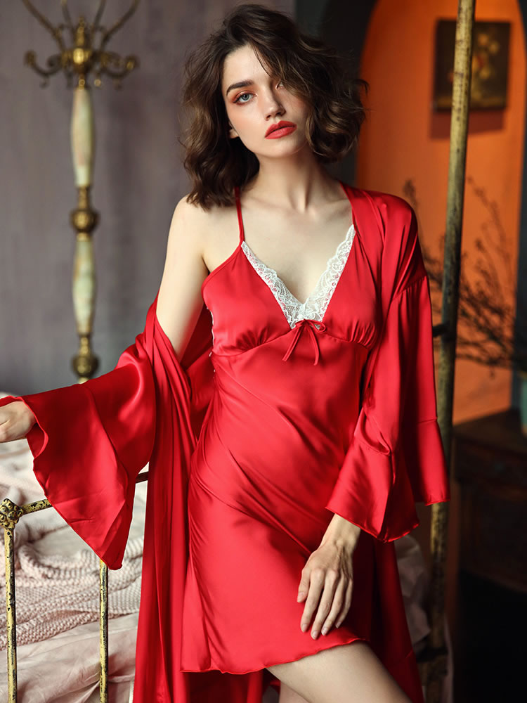 Elegant Satin and Lace Babydoll And Robe Set