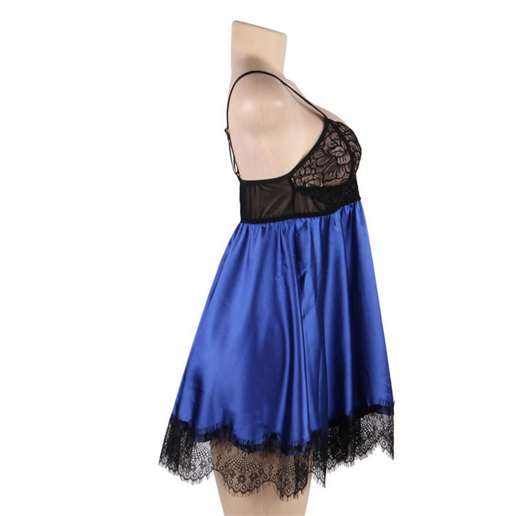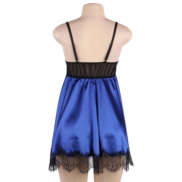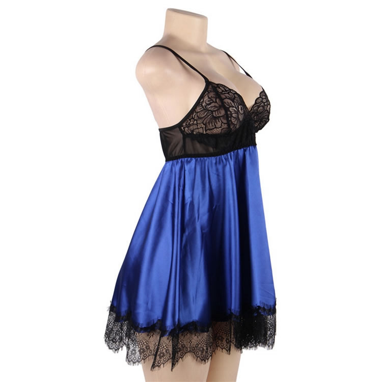 Bring a touch of elegance to the bedroom in this satin babydoll set featuring sheer lace cups, a V-neckline, adjustable spaghetti straps, and a satin bodice with a sheer lace hem.