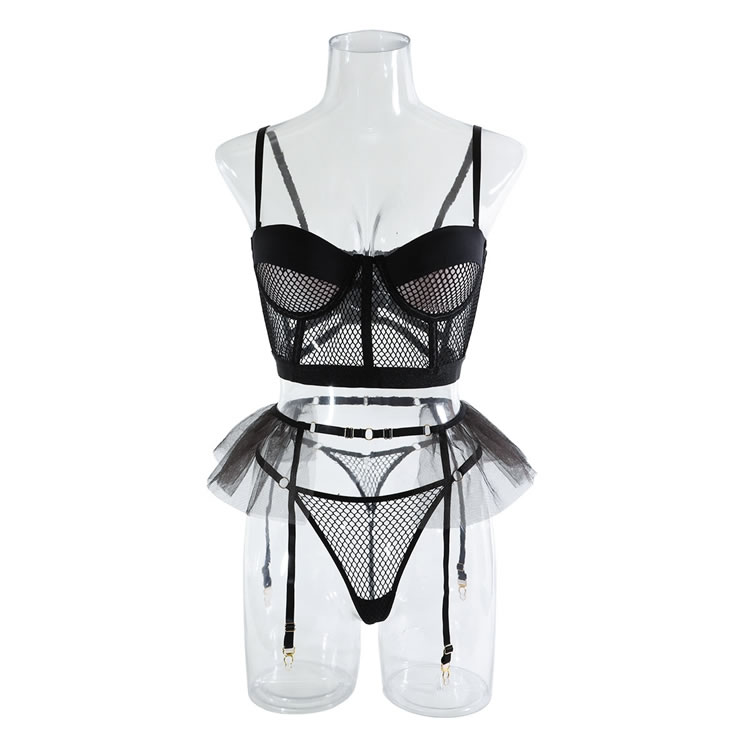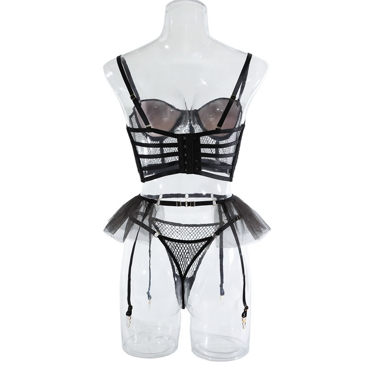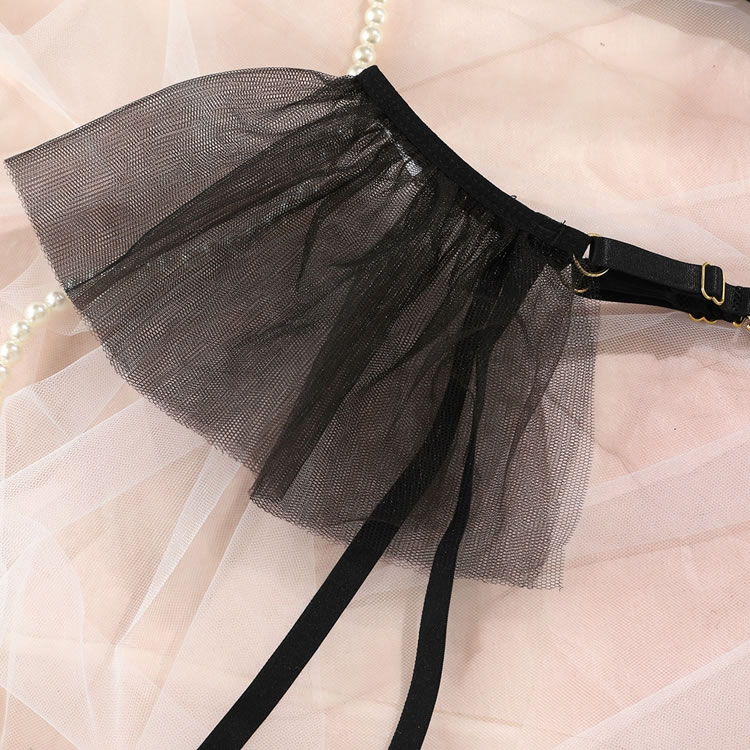 Let your babe sweep you off your feet in this elegant bra set featuring underwire cups, adjustable spaghetti straps, a hook and eye back closure, a matching high waisted garter belt with adjustable garter straps, and a matching panty.