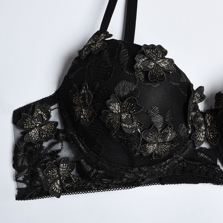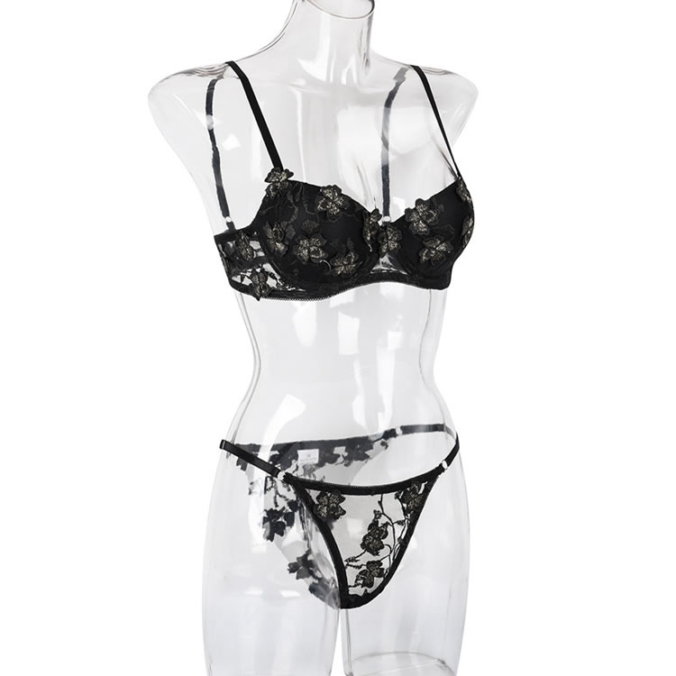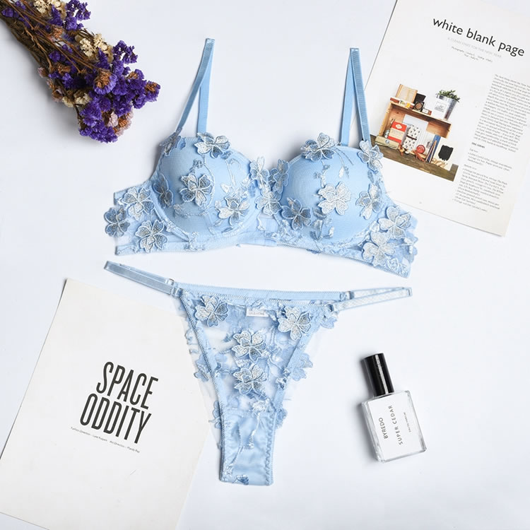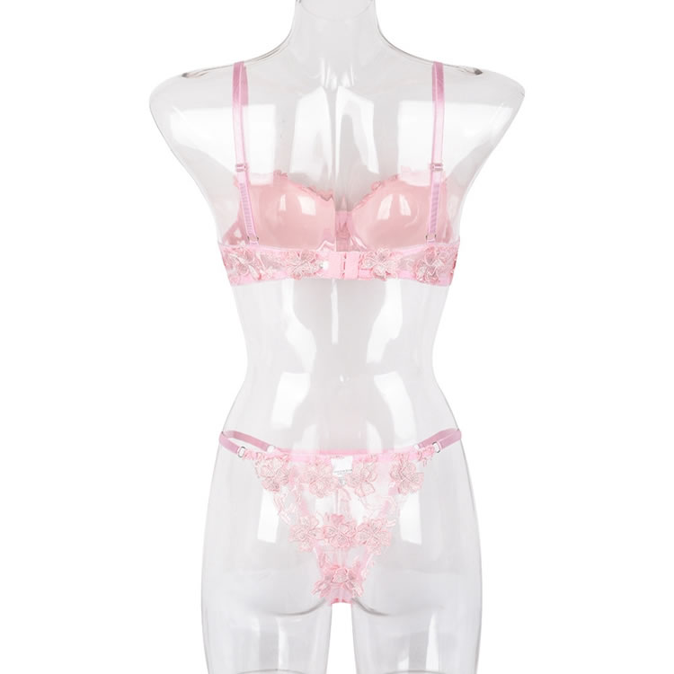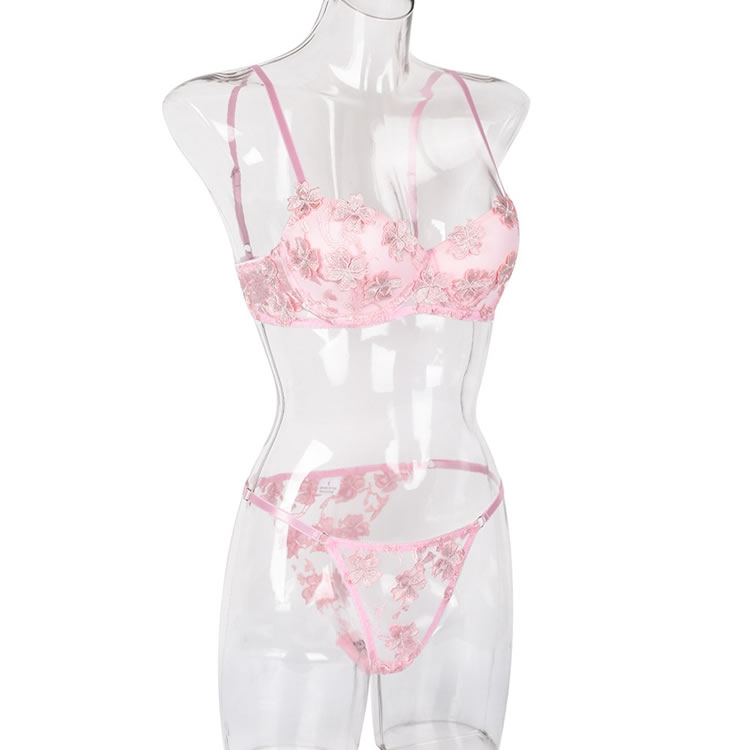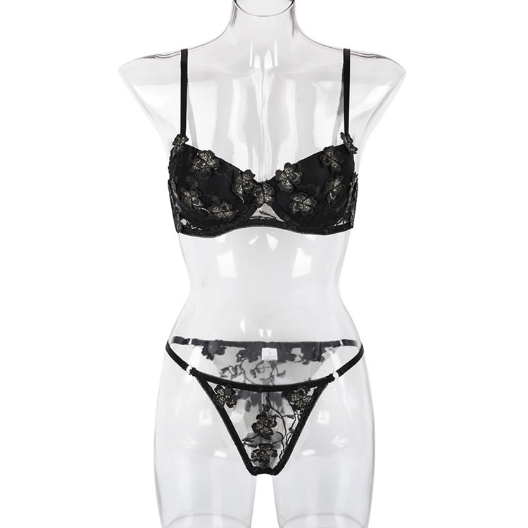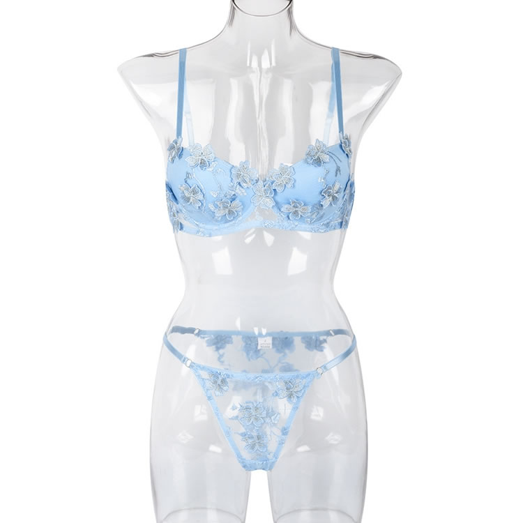 Long for French summers in this seductively sweet bra set featuring floral lace applique underwire cups, adjustable spaghetti straps, a hook back closure, and a matching panty with thin hip straps, and a cheeky cut back.