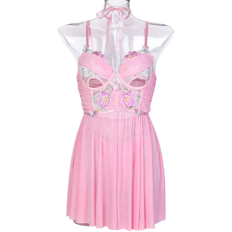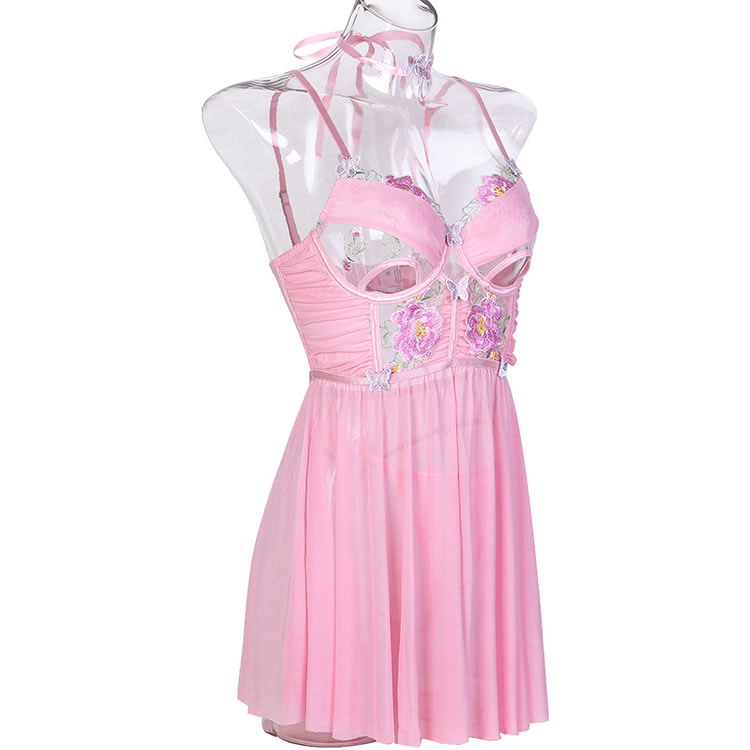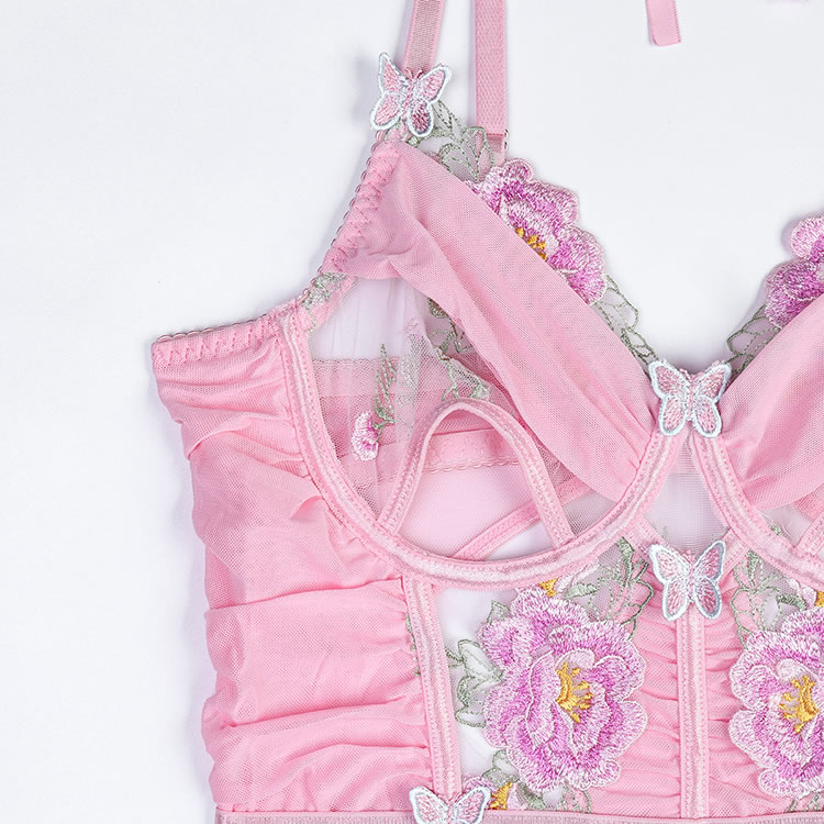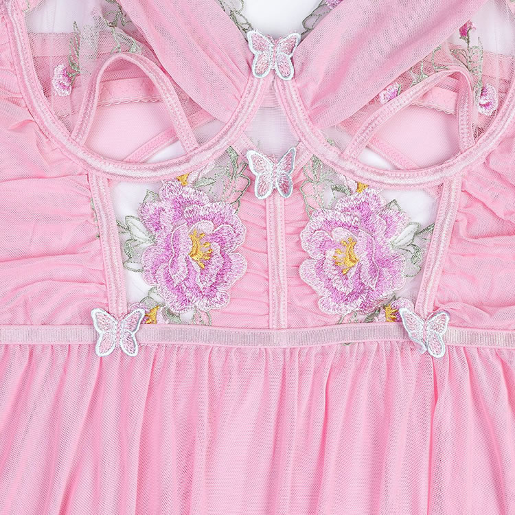 Lace Embroidered Mesh Butterfly Babydoll Set