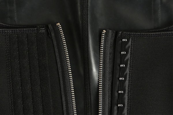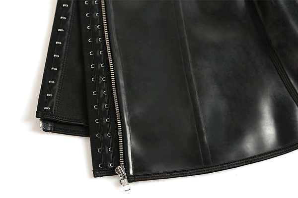Wear this latex waist trainer with your own bra for a beautiful, flatter, smoother and defined hourglass figure. Made from a high compression performance fabric for comfort. Zip up cover hook and eye closure.