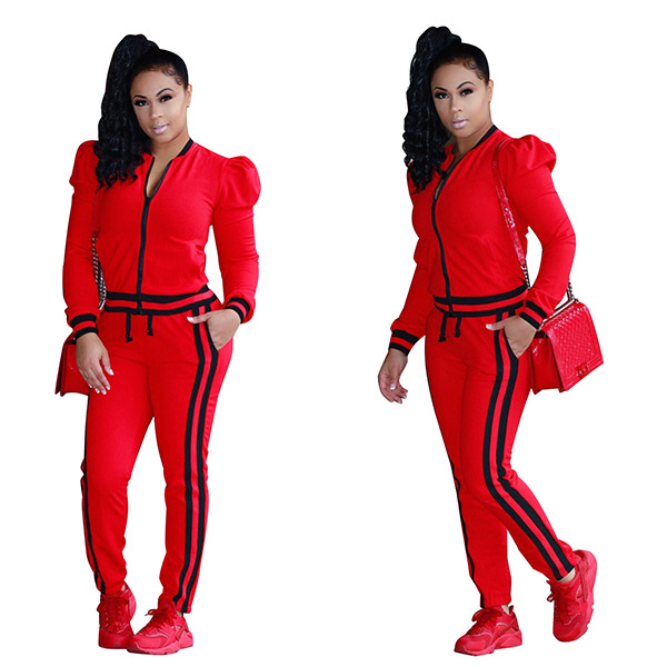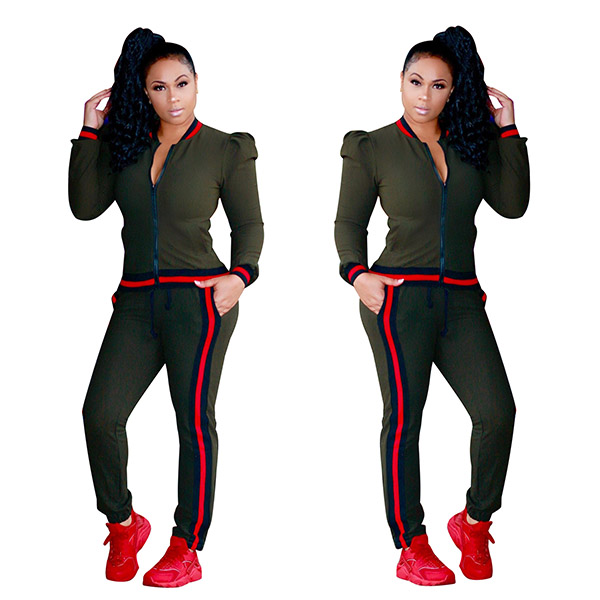 Long Sleeve Zipper Jackets and Bodycon Long Pant Set