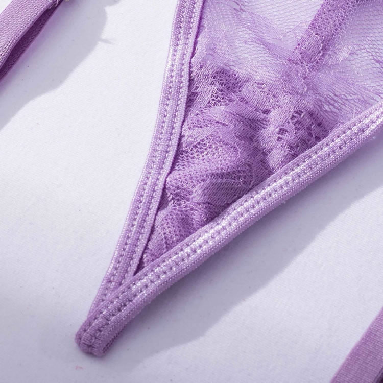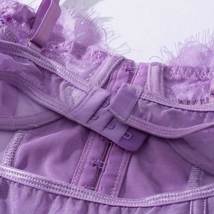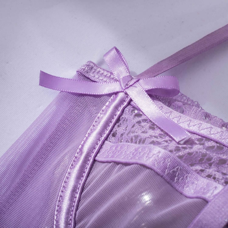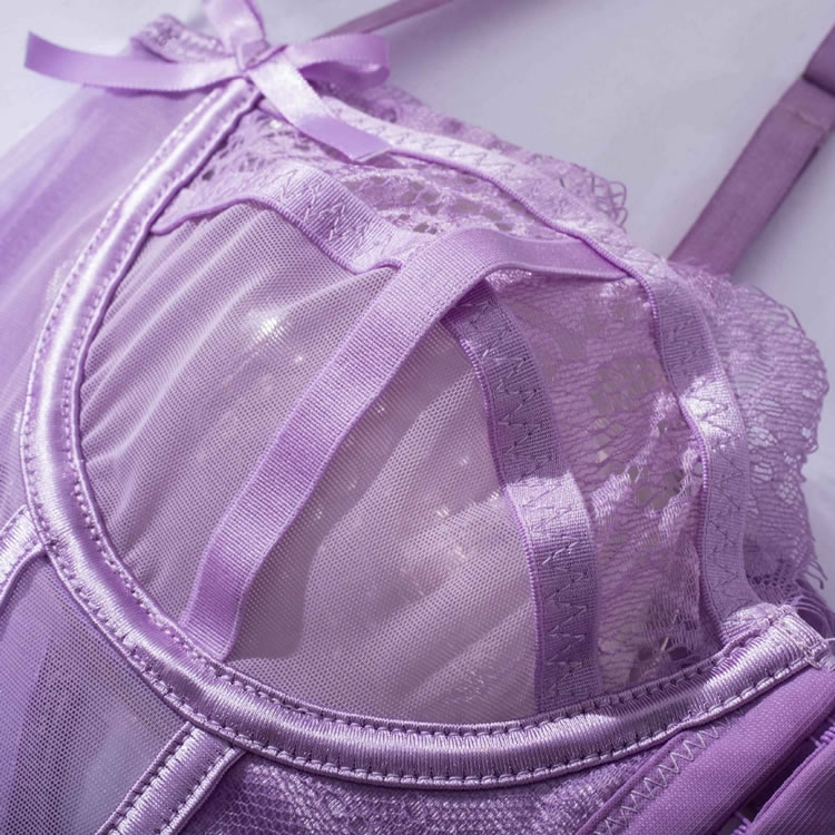 Reveal your love in this two piece garter set featuring a lace bra with sheer lace underwire cups, a sexy lace and mesh underbust with fornt hook and eye closure details, adjustable spaghetti straps, a hook and eye back closure with a keyhole, a matching garter belt with adjustable garter straps, and a matching g-string panty.