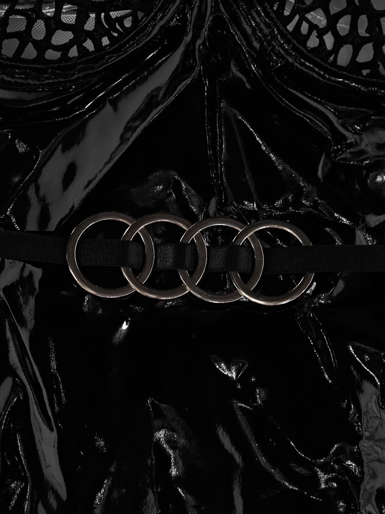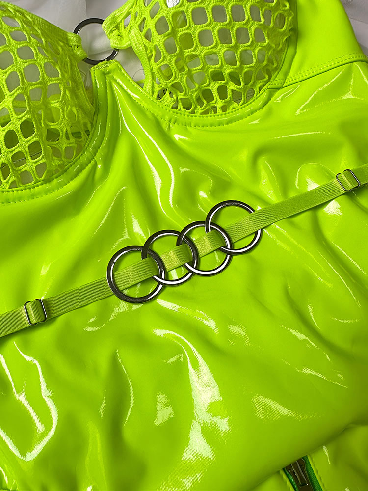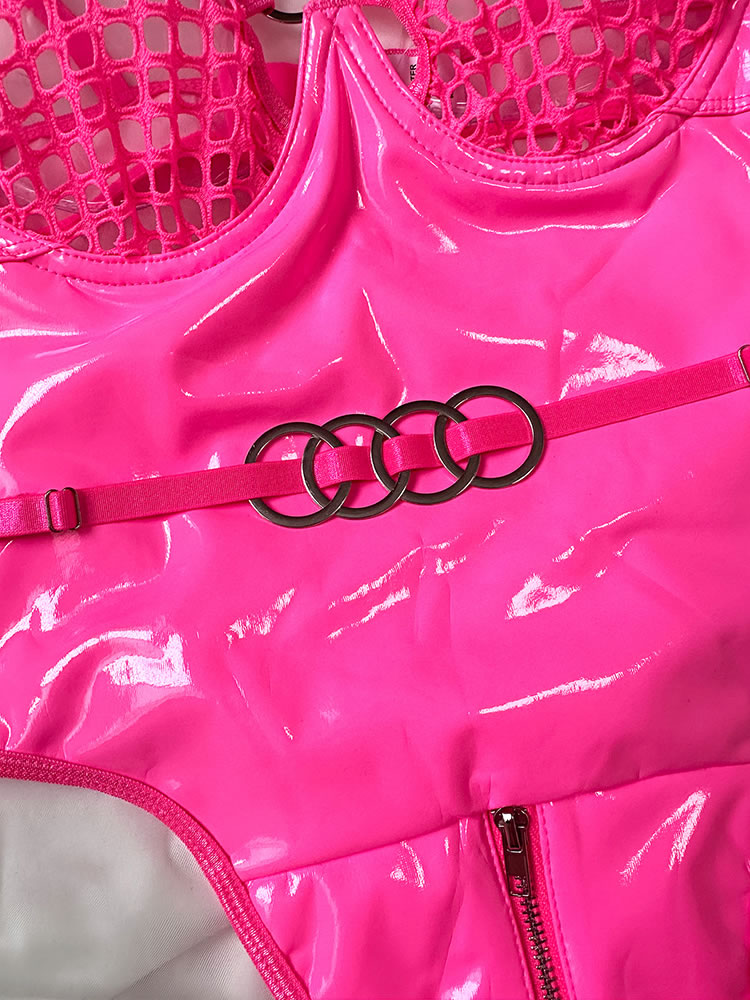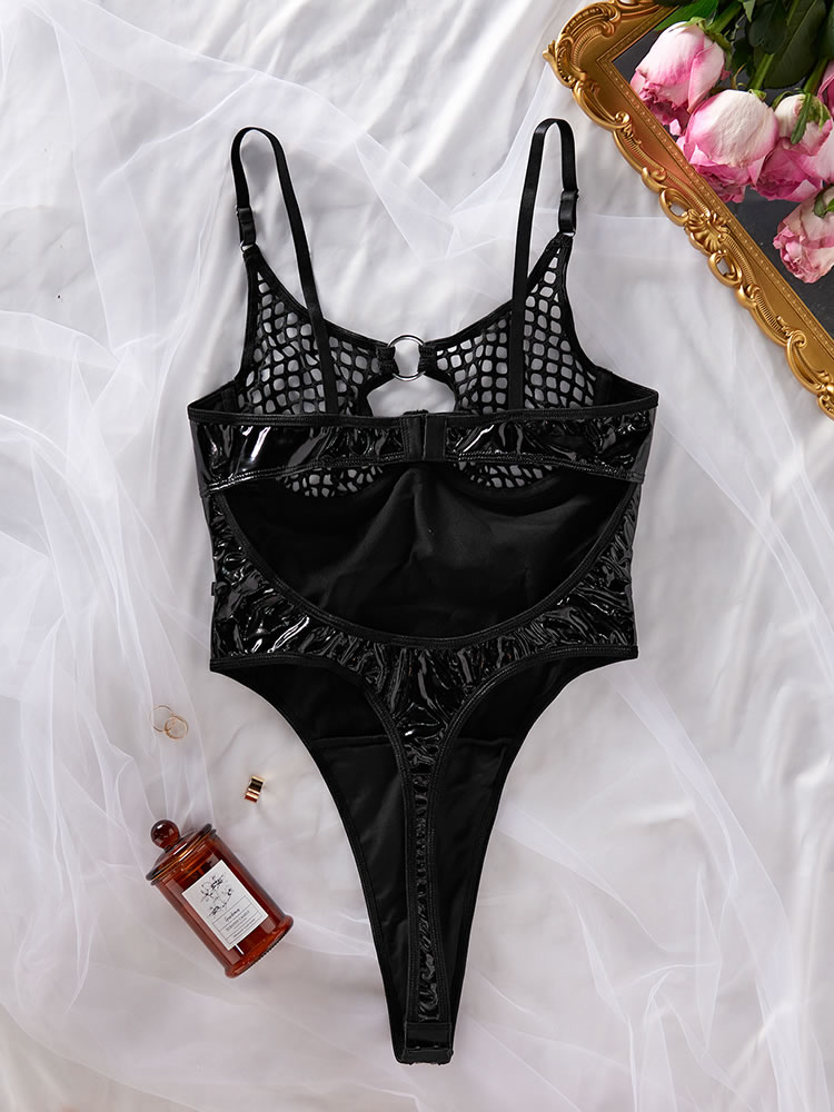 Shall we add some spice? Elevate your late-night allure with this enticing teddy, now offered in Black, Black Red, Rose, and Neon Green. It showcases a captivating Vinyl Fishnet design, adjustable straps, intricate cutout detailing, an Underwire Fishnet Bra Top, a sleek vinyl bodice, and a revealing Thong Back Bottom.