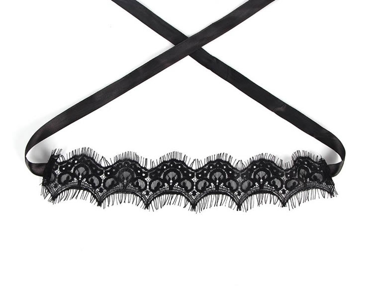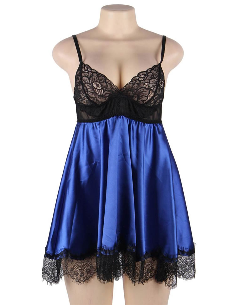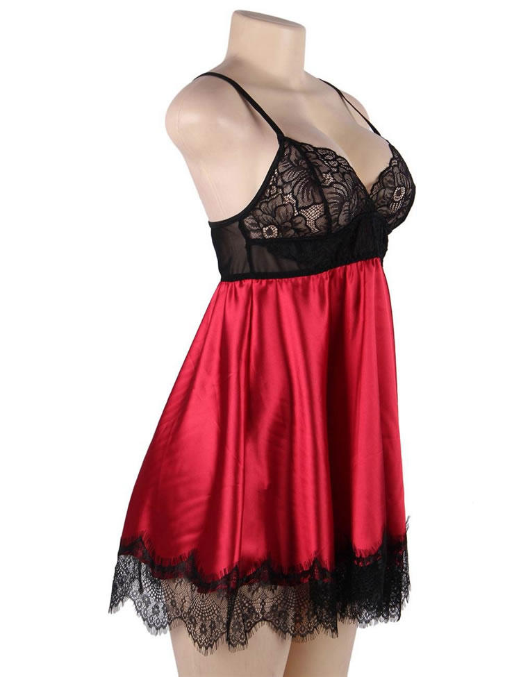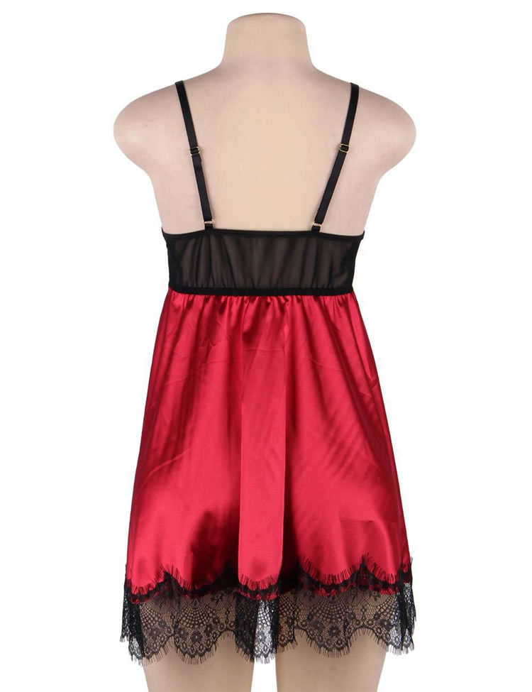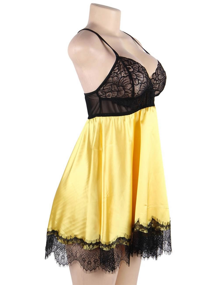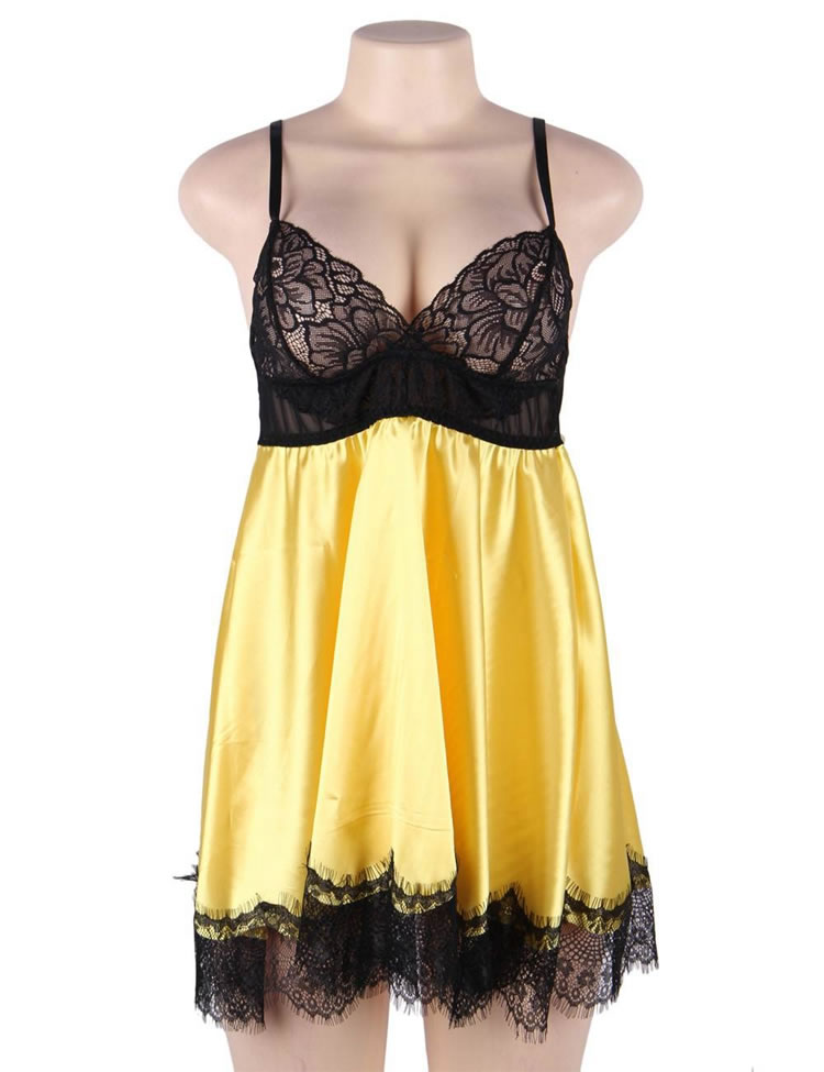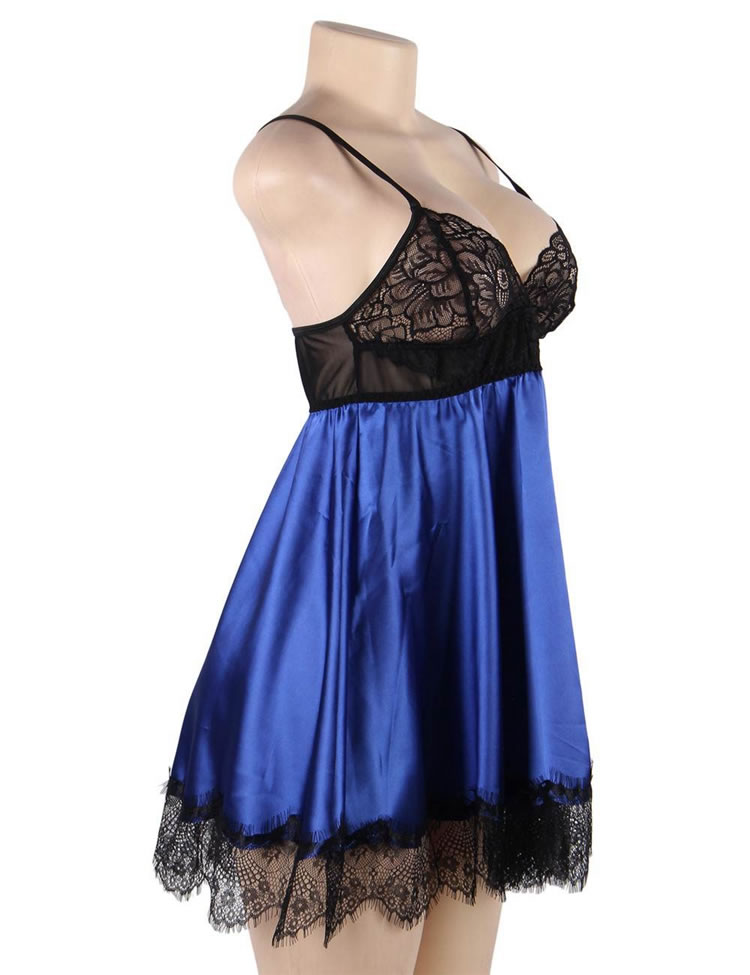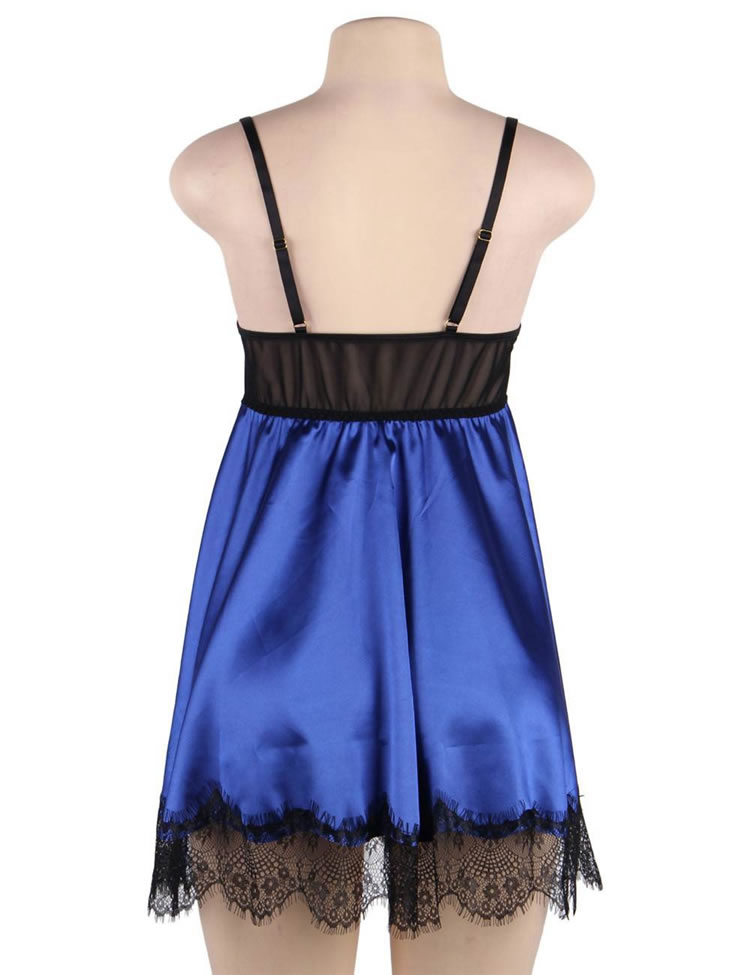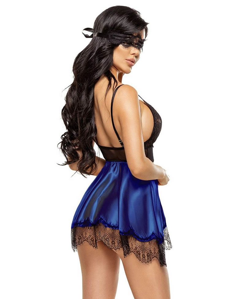 Satin Eyelash Lace Stitching Sexy Babydoll With Eyepatch