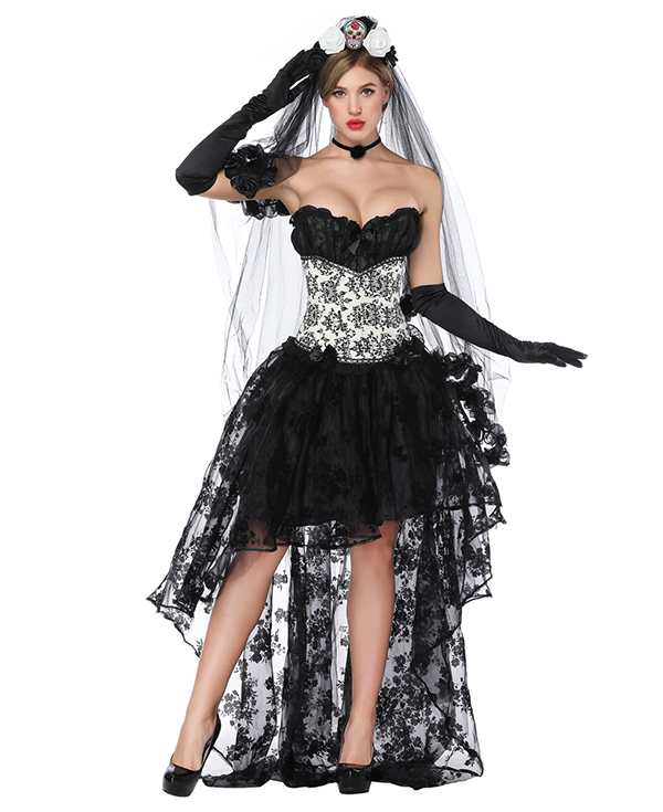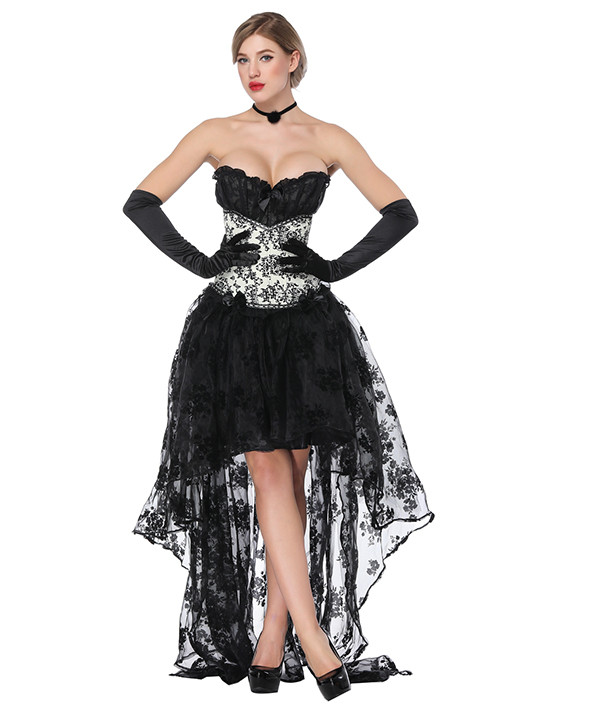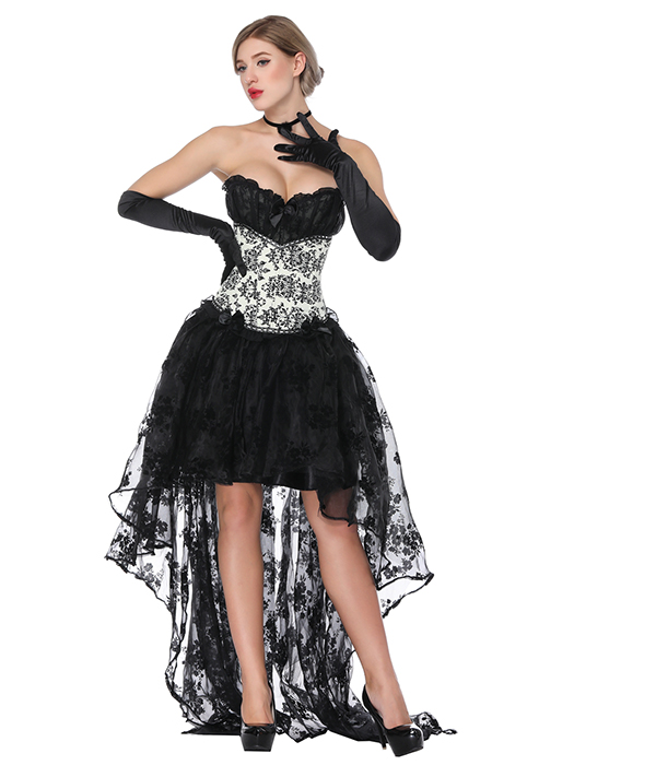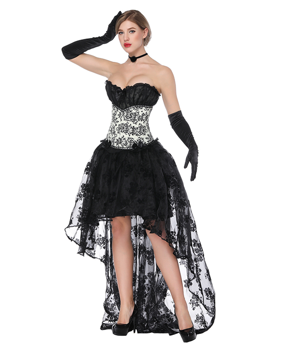 Sexy Sweetheart Jacquard Overbust Corset And High Low Skirt