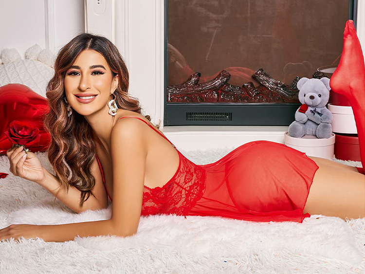 Slip into something more comfortable like this exclusive babydoll set featuring sheer lace cups, a satin bow accents, adjustable spaghetti straps, a sheer mesh skirt, and a matching thong.